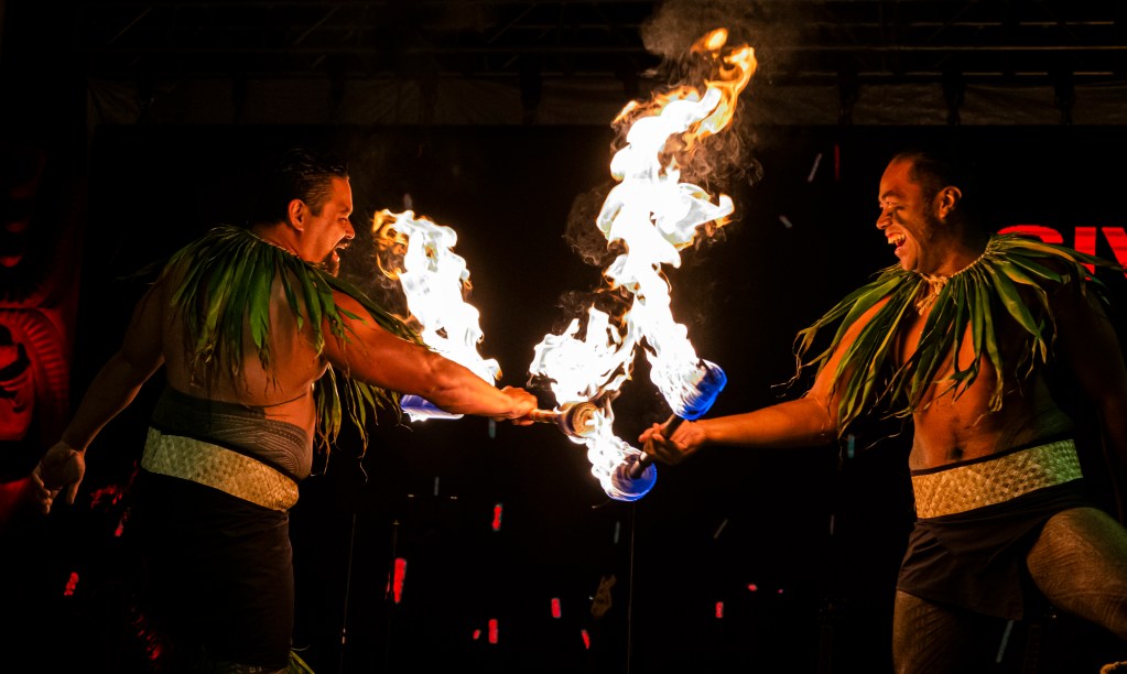 火を操るダンサーのスリリングなパフォーマンスに、観客から大きな歓声と拍手が。