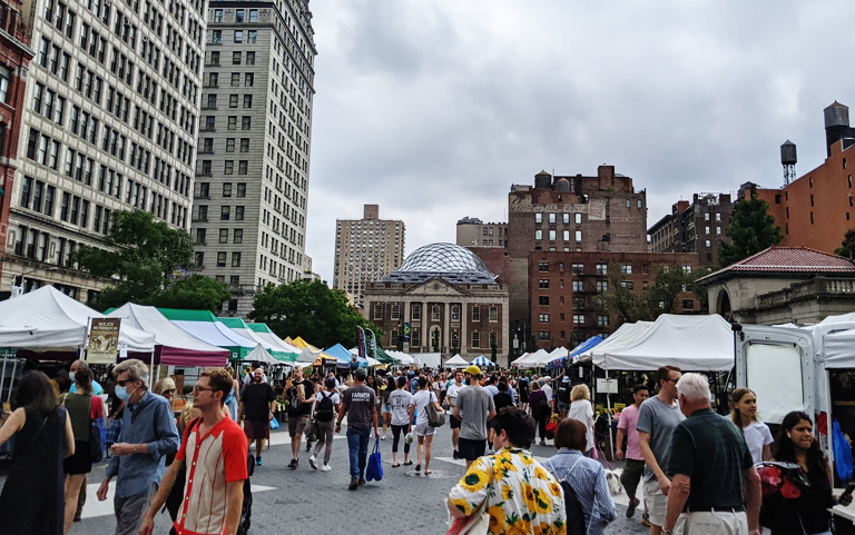 ニューヨークのファーマーズマーケットは秋の訪れとともに地元の農産物が豊富に揃い、秋の味覚を楽しむのに最適な場所です。特に、ユニオンスクエアのファーマーズマーケットは、ニューヨークでも最大級の規模を誇り、地元の農家や生産者が新鮮な果物や野菜を販売しています。秋には、りんご、南瓜、サツマイモ、クランベリーといった旬の食材が多く並び、これらを使った季節限定の焼き菓子やジャム、スープも人気です。