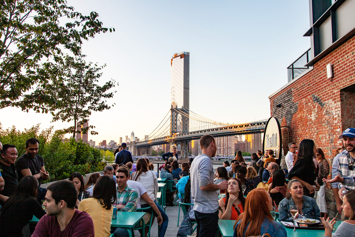 おすすめは、ローカルのシェフが手掛ける創作料理や、ニューヨークスタイルのベーグル、スイーツ。広々としたスペースには、フードスタンドやカフェが並び、ブルックリンブリッジを眺めながら食事を楽しむことが可能です。また、屋上スペースもあり、絶景をバックにした特別なダイニング体験ができます。