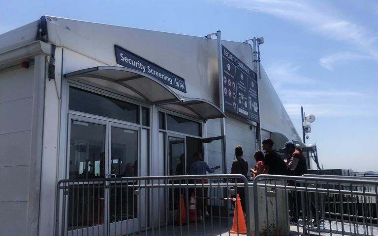 チケットを購入したら、バッテリーパーク内にあるフェリー乗り場に向かいます。乗船前には、空港のようなセキュリティチェックが実施されているため、早めに到着して手続きを済ませることをおすすめします。