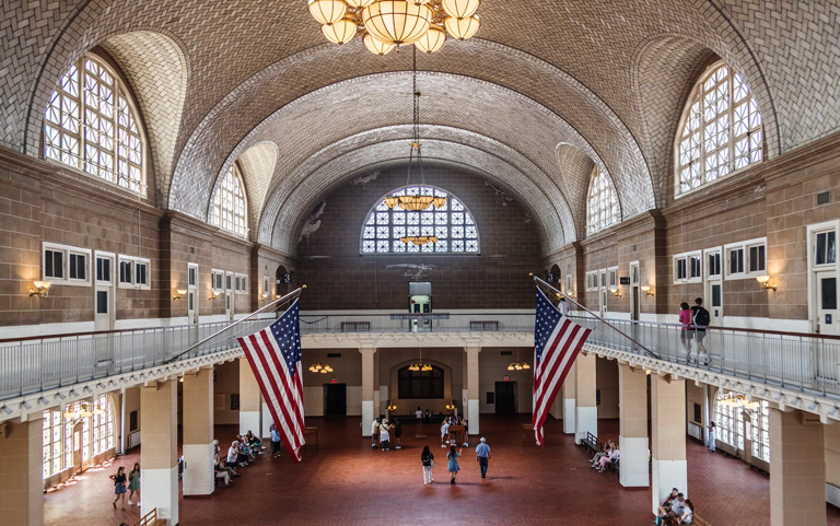 エリス島はニューヨーク港に浮かぶ歴史的な島で、かつてアメリカへの玄関口として移民たちが最初に足を踏み入れた重要な場所です。1892年から1954年まで約1200万人もの移民がこの島を通過し、アメリカに新しい生活を求めてやってきました。現在、エリス島は移民博物館として保存されており、当時の移民たちが経験した検疫や手続き、アメリカでの生活に至るまでの過程を展示しています。