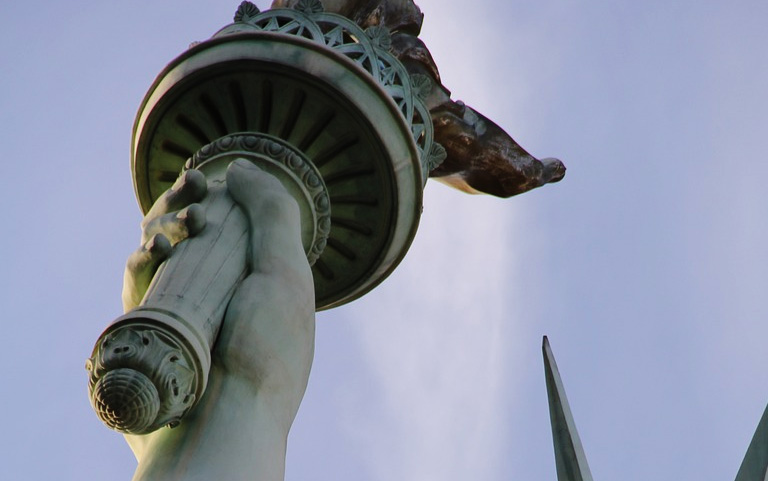右手に掲げた松明は「自由の光」を象徴し、左手に抱えた石板にはアメリカ独立宣言の日付「1776年7月4日」がローマ数字で刻まれています。さらに、像の足元には鎖があり、これは解放と独立を象徴しています。自由の女神像は、単にアメリカの独立記念としてではなく、世界中の人々にとっての自由、民主主義、平等の象徴としての意味を持っています。