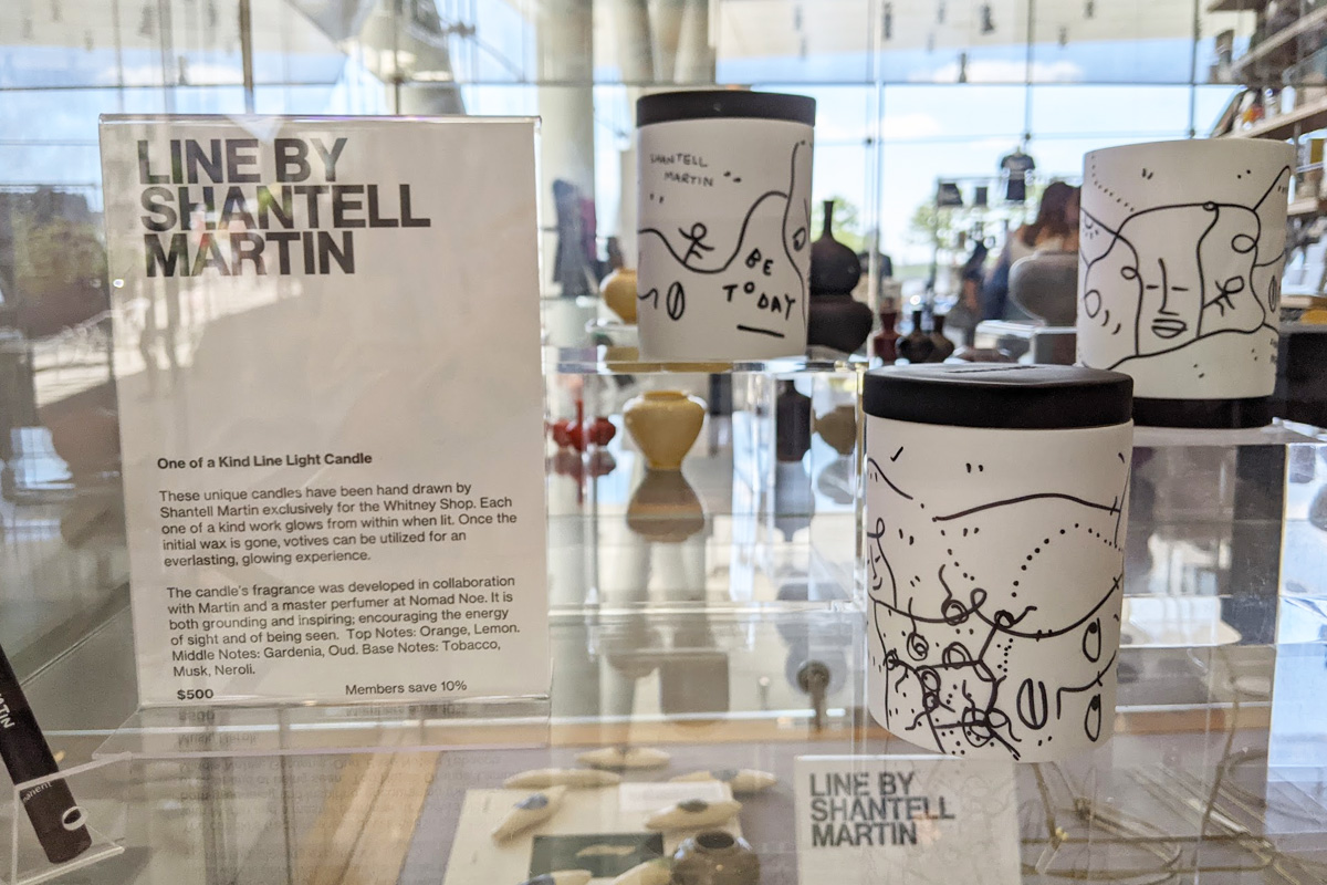 ホイットニー美術館のミュージアムショップでは、著名なアーティストとのコラボグッズも豊富に展開されています。イギリス出身のビジュアルアーティスト「シャントール・マーティン(Shantell Martin)」による「LINE」シリーズ。彼女の特徴的なモノクロの線画を活かした、スタイリッシュなデザインが印象的です。