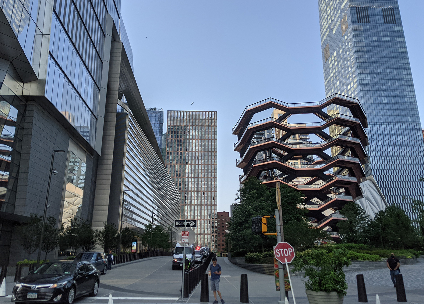 ホイットニー美術館やハイラインを北に進むと、マンハッタンの西側に位置する「ハドソンヤード」に到着します。2019年にオープンしたこのエリアは、ニューヨーク最大級の都市開発プロジェクトとして誕生し、最先端の建築・ショッピング・レストラン・展望台が集まる今注目のスポットです。
